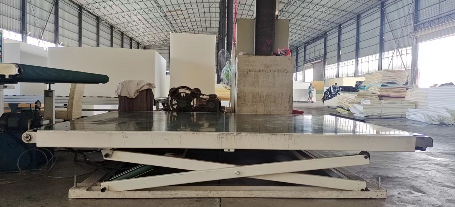 配合異形數(shù)控切割機(jī)進(jìn)行升降料及輸送海綿的裝置